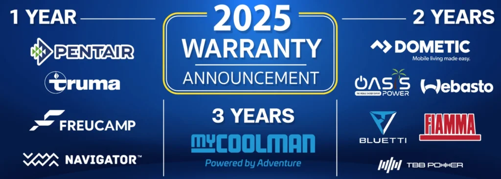 • รับประกัน 2 ปี: Dometic, Mobicool, Fiamma, EcoFlow, Bluetti, PowerOak, TBB Power
